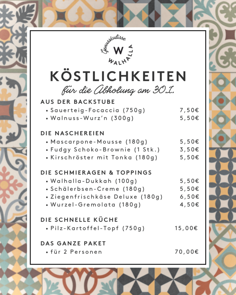 It’s Friday – I’m in Love! Kennt ihr das auch? Endlich Wochenende, aber keine Lust auf Kochen oder Ausgehen. Doch auf gutes Essen will man trotzdem nicht verzichten. Wir haben die Lösung: Freitags gibt’s bei uns in der Walhalla Genusskulisse alles, was du für ein geschmackvolles Wochenende brauchst.
